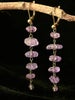 Deze kralen van amethyst uit Afghanistan zijn met de hand geslepen, en daardoor is elke kraal anders. Het was puzzelen om een paar bij el;kaar te krijgen. De kralen zijn verbonden met gezwart zilverdraad, de oor mechanieken zijn van 14 krt goud (brisures).