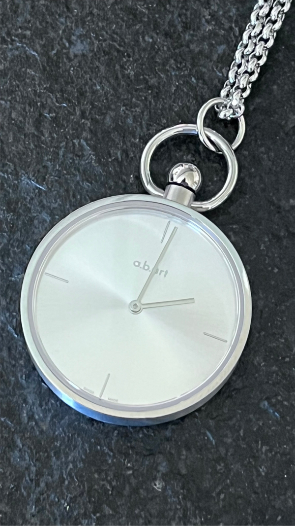 Een uitkomst voor iedereen die van klassieke horloges/klokjes houdt of geïrriteerd raakt van horloge banden. a.b.art maakt dit klassiek ogende horloge aan een sterke stalen ankerketting.
