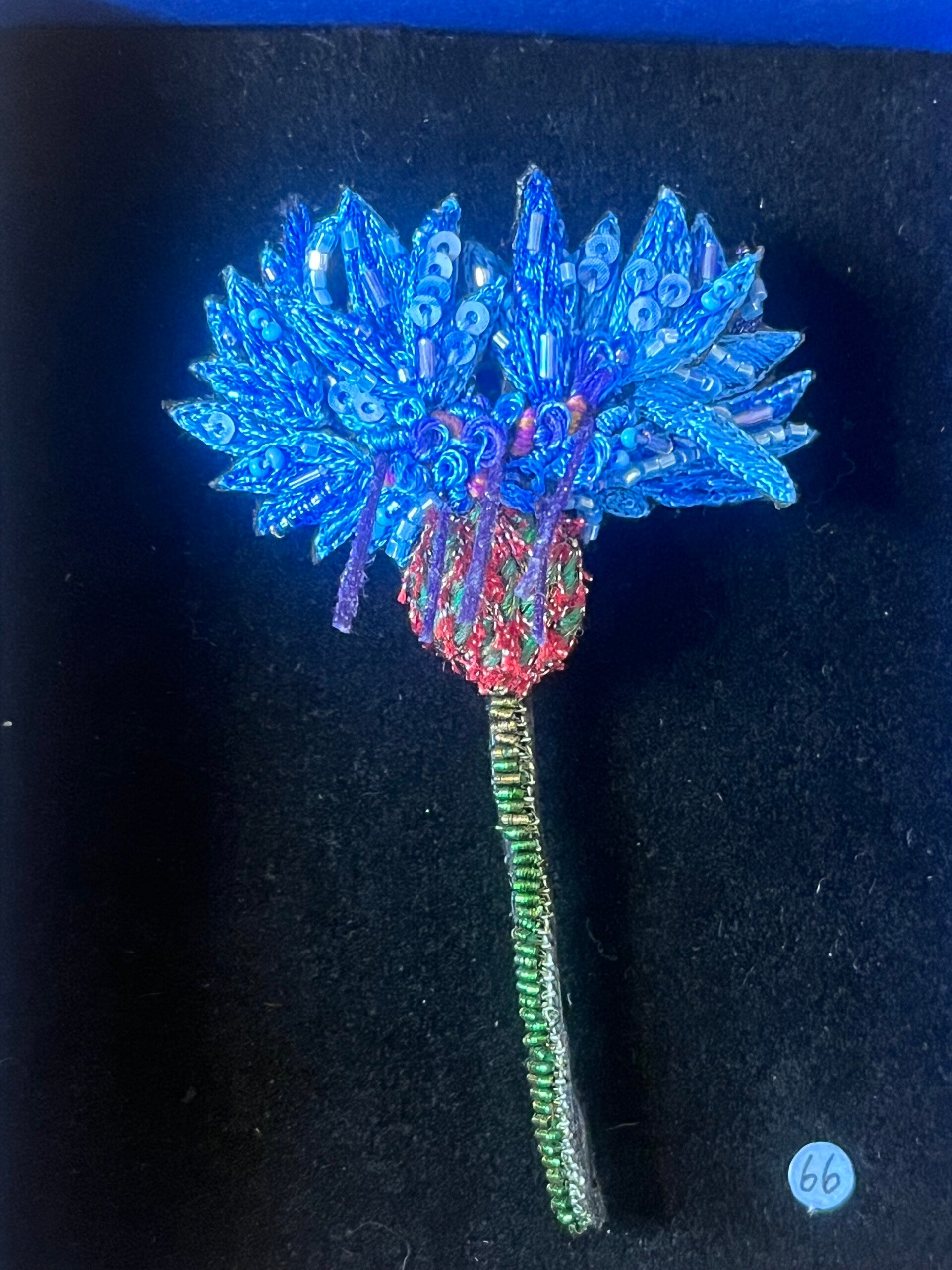 Trovelore is een klein atelier in India en maakt wonderschone broches, die traditioneel worden geborduurd door (volwassen) mannen. Hiervoor worden verschillende materialen gecombineerd, zoals pailletten, kralen en zijde draden, bevestigd op vilt.